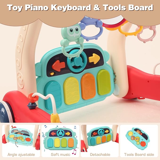 This innovative 2-in-1 play gym and baby walker is designed to grow with your child, transforming effortlessly from a soft piano play mat to an interactive floor-play activity panel, and finally into a stable baby walker. It provides multi-stage developmental support through engaging toys, bright colors, and musical piano keys that stimulate your baby's senses and fine motor skills.
