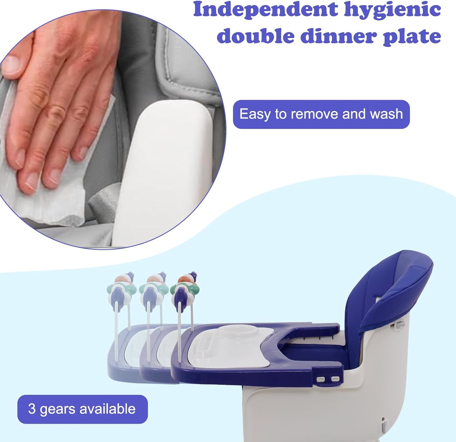 Made with a stable, easy-clean frame and a comfortable cushioned seat, it ensures safe mealtimes, fun playtime, and stress-free cleanup for parents. The adjustable tray with built-in toys keeps baby entertained, while the secure harness provides peace of mind.