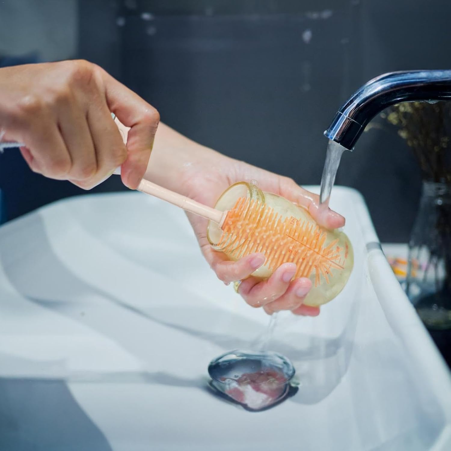Soft 100% food-grade silicone bristles provide thorough, scratch-free cleaning, while the ergonomic handles ensure a comfortable grip. The included drying rack features a hidden drainage outlet to prevent water buildup, keeping tools dry and organized while saving countertop space.