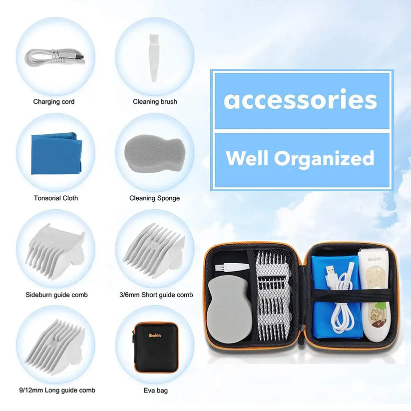 A low-vibration and silent hair clipper for baby offers a comfortable and hygienic hair-cutting experience at home. With the guide combs, parents with zero experience can immediately become magical hair stylists. A safe hair trimmer with rounded blade teeth protects sensitive areas and ensures no harm and discomfort, making it an ideal choice for hassle-free haircuts for babies and toddlers.