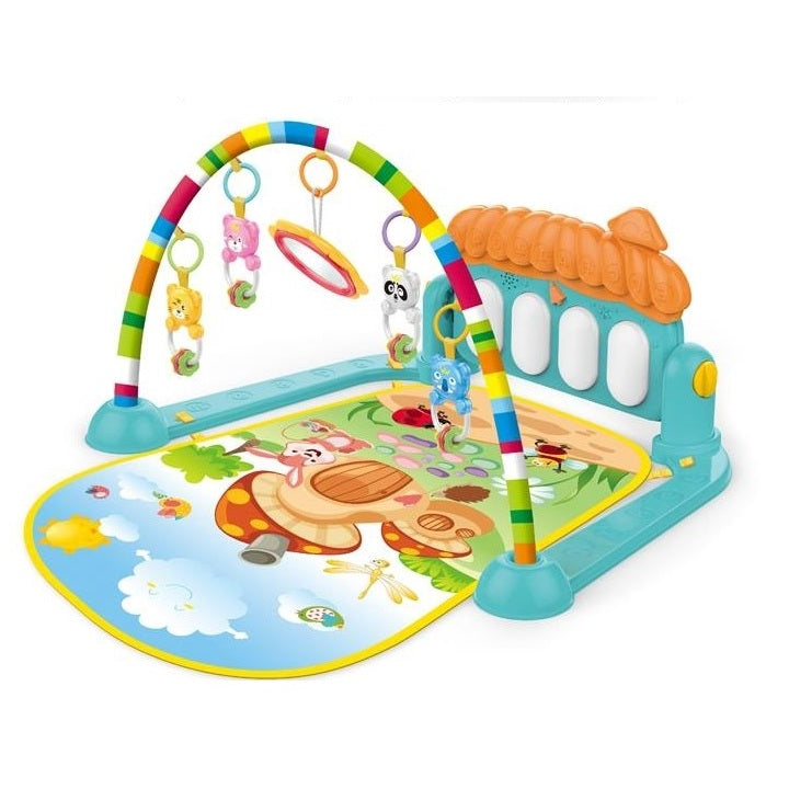 This multifunctional play gym is designed to engage and entertain your baby through interactive play. Featuring a small adjustable piano and several adorable hanging animal toys, it encourages sensory exploration and developmental growth.