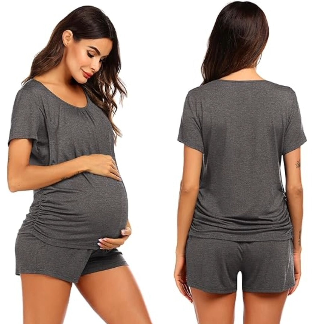 Discover a new level of comfort with our Summer Short Sleeve Maternity Pyjamas! Designed for warm nights, these pyjamas offer unparalleled softness and practicality for expecting and new mums. Embrace the perfect blend of coziness and functionality as you stay cool and comfortable throughout your journey.