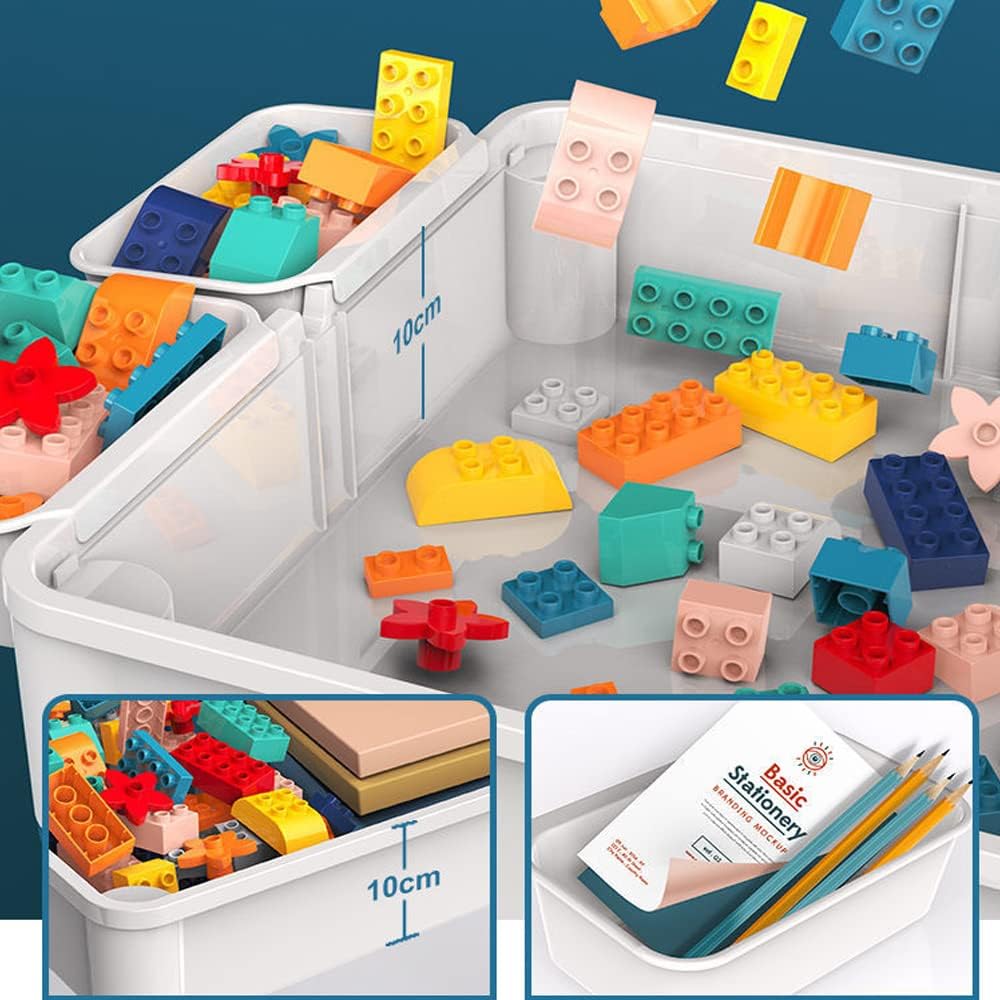 This versatile 2-in-1 kids activity table is designed to engage children ages 2 to 4 years old with multiple play and learning options. It is compatible with LEGO DUPLO building blocks, making it an ideal space for creative and educational fun.