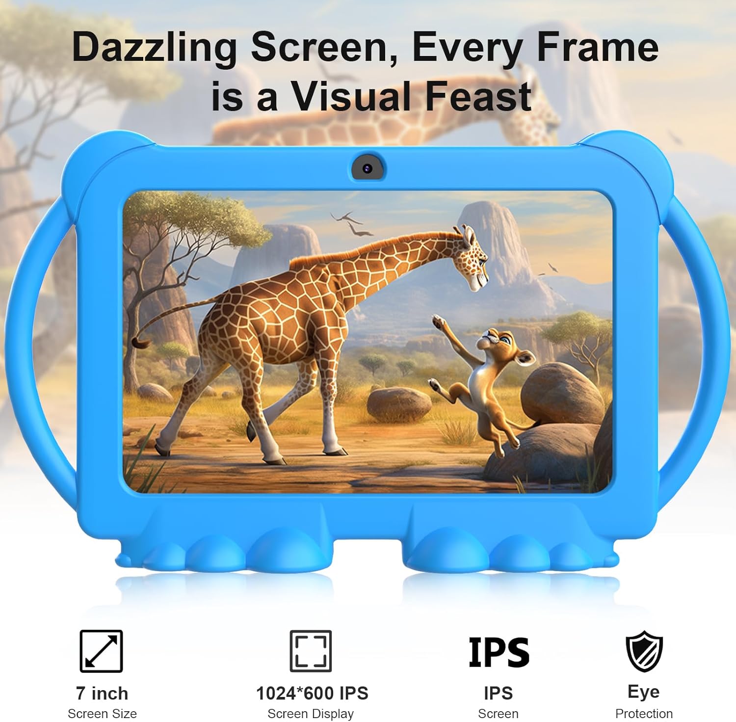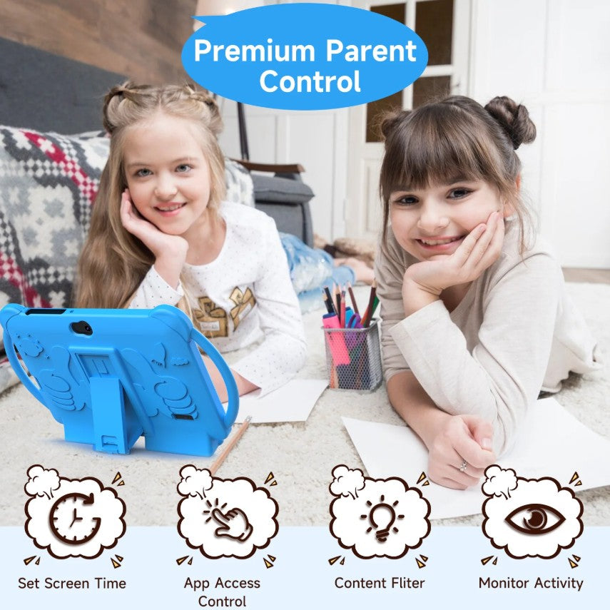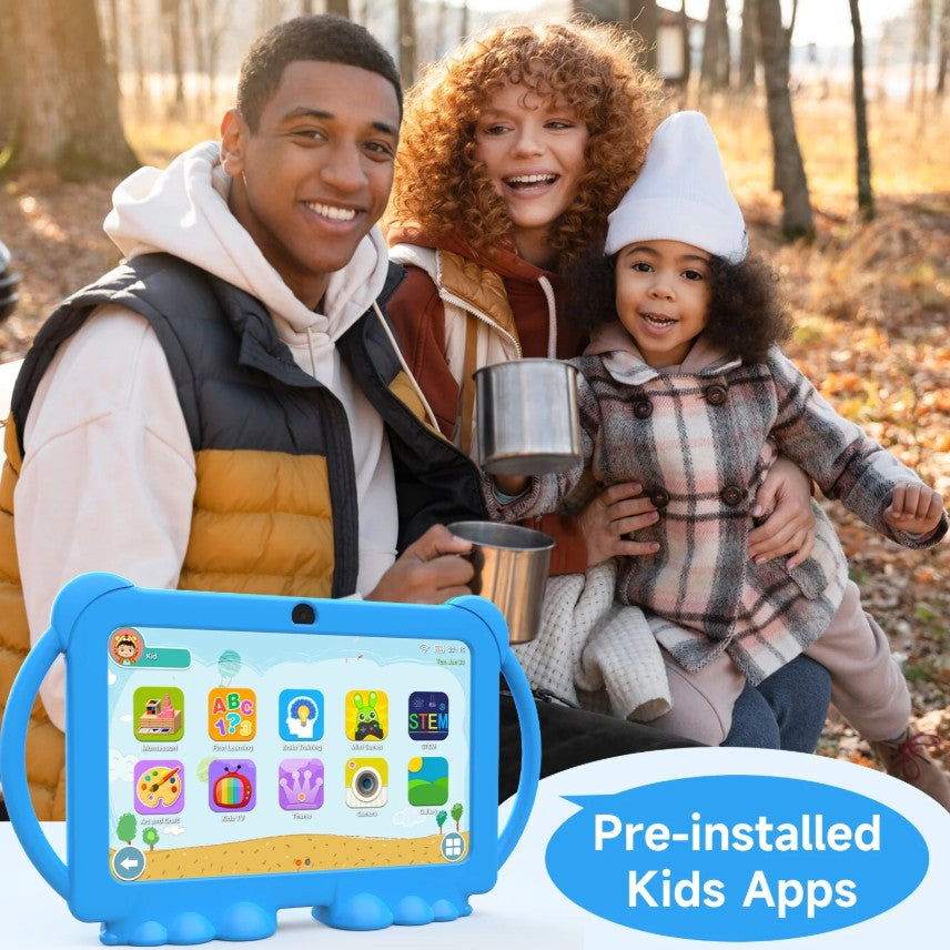 This Kids Educational 7” Android Tablet With Protective Case combines learning and fun in a durable, kid-friendly device designed for young explorers. Equipped with a 7-inch touch screen and pre-installed with the IWAWA kids app, which offers safe and fun content for your kids. You can easily control screen time, select appropriate content, and ensure safe browsing for your kids. The app offers various features, including education, art, games, kids' TV, and photo-taking, to provide your child with a fun and engaging learning experience.