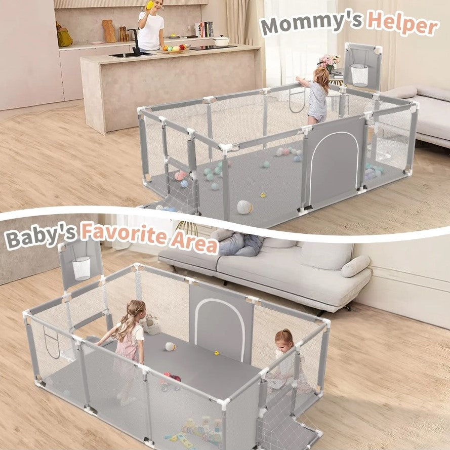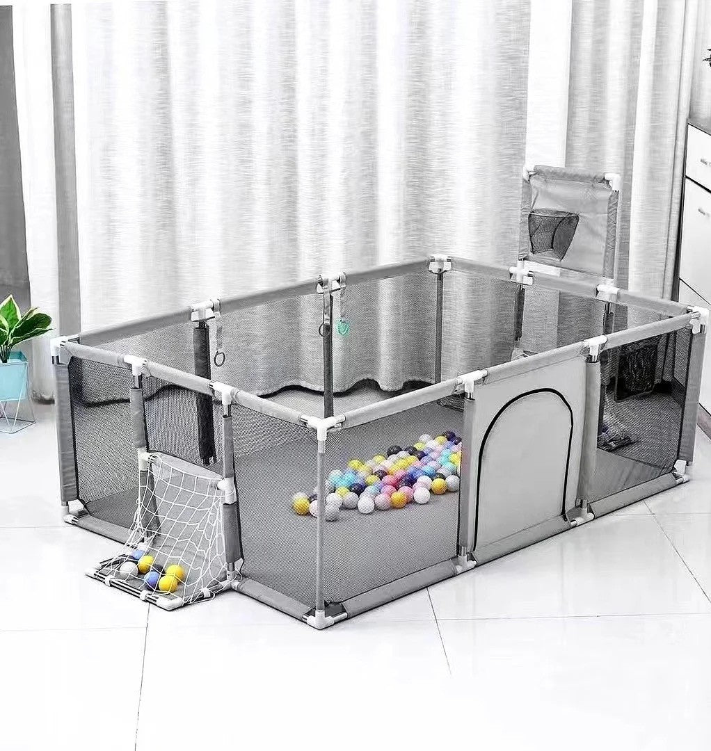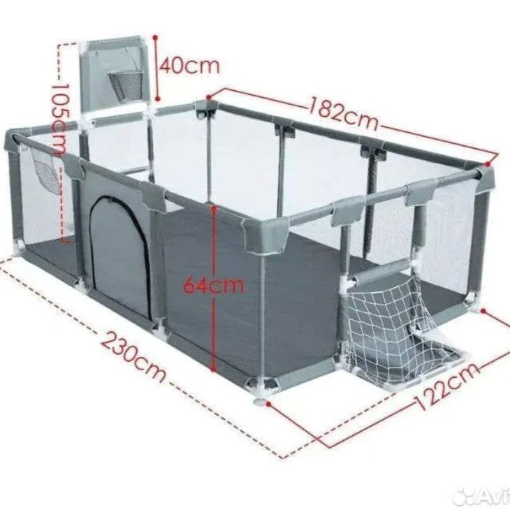 This Large Rectangle Fabric Playpen measures 182 cm by 122 cm, creating a spacious and safe play area for your child. Designed with durable Oxford Cloth and breathable mesh, it balances strength and comfort to nurture your child's development.