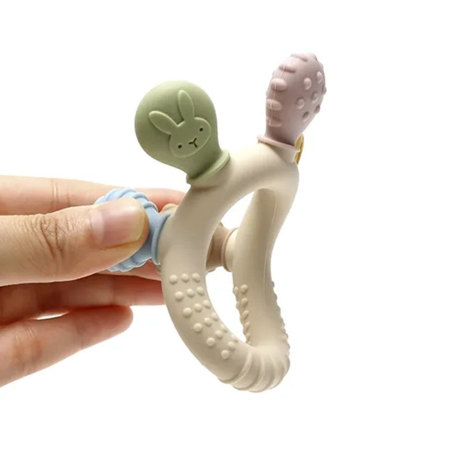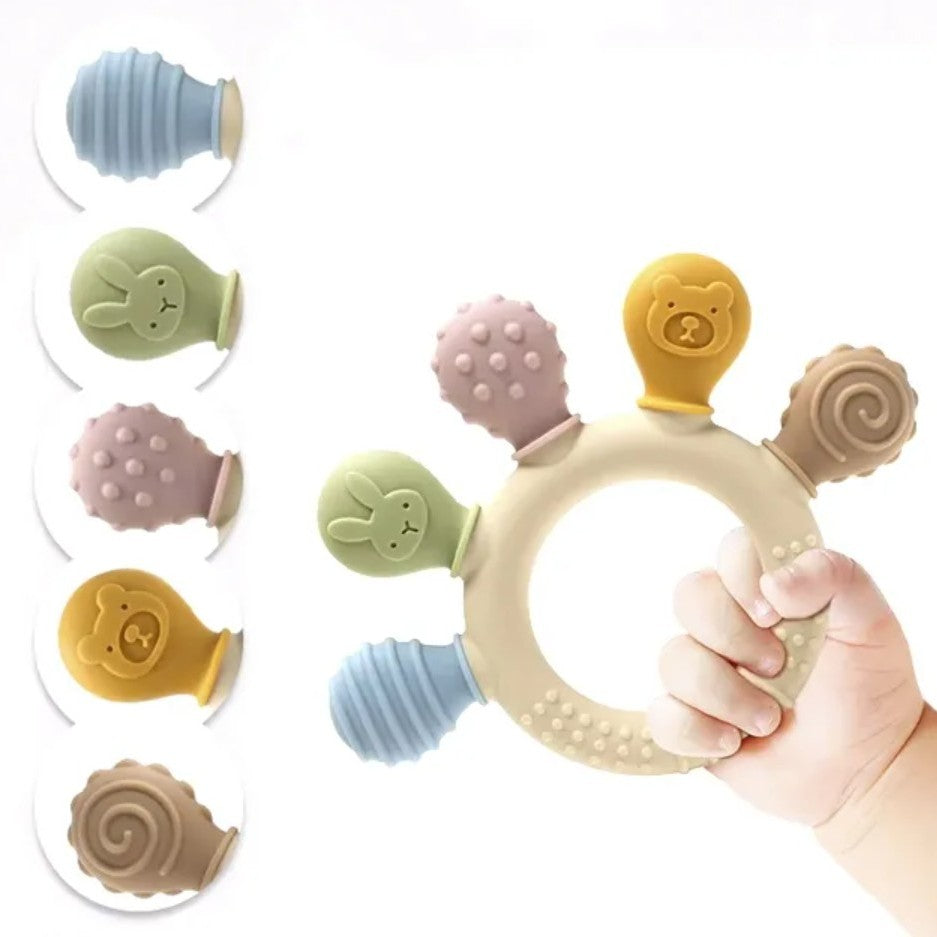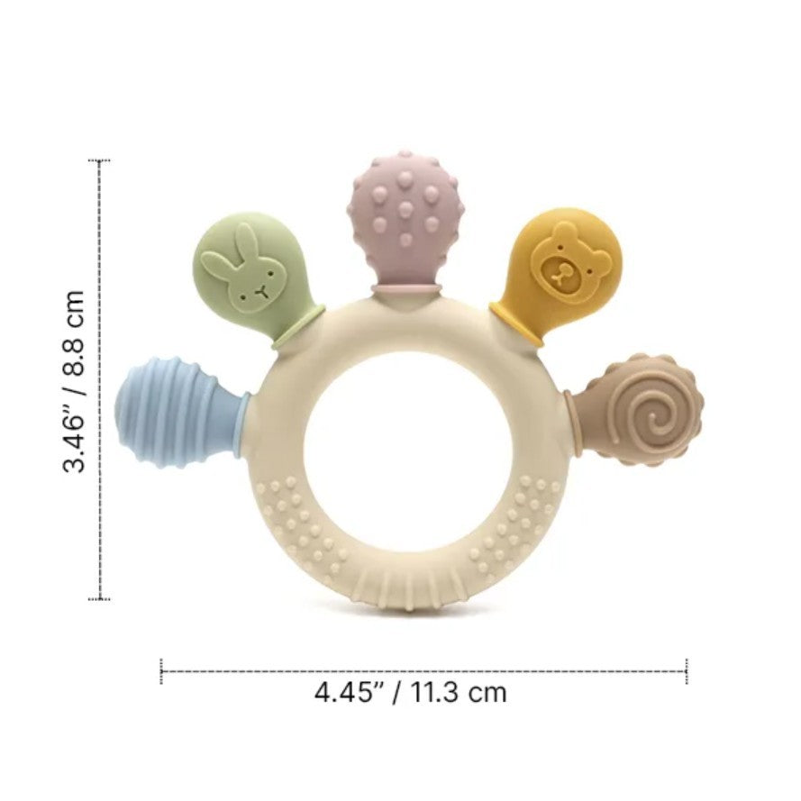 Brighten your little one’s teething time with the Rainbow Silicone Sensory Teething Ring! Made from soft, safe silicone, this colorful ring soothes sore gums while engaging curious fingers with its fun textures. Perfect for tiny hands to grasp and explore, it turns teething into a playful adventure full of comfort and joy.